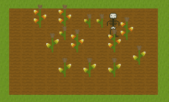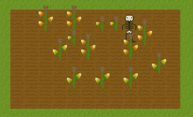 You are a retired skeleton enjoying life in your candy corn field. Candy corns are delicious. Let's hope no one else wants any.